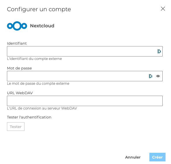 - Renseigner l'identifiant et le mot de passe de votre compte Nextcloud,
